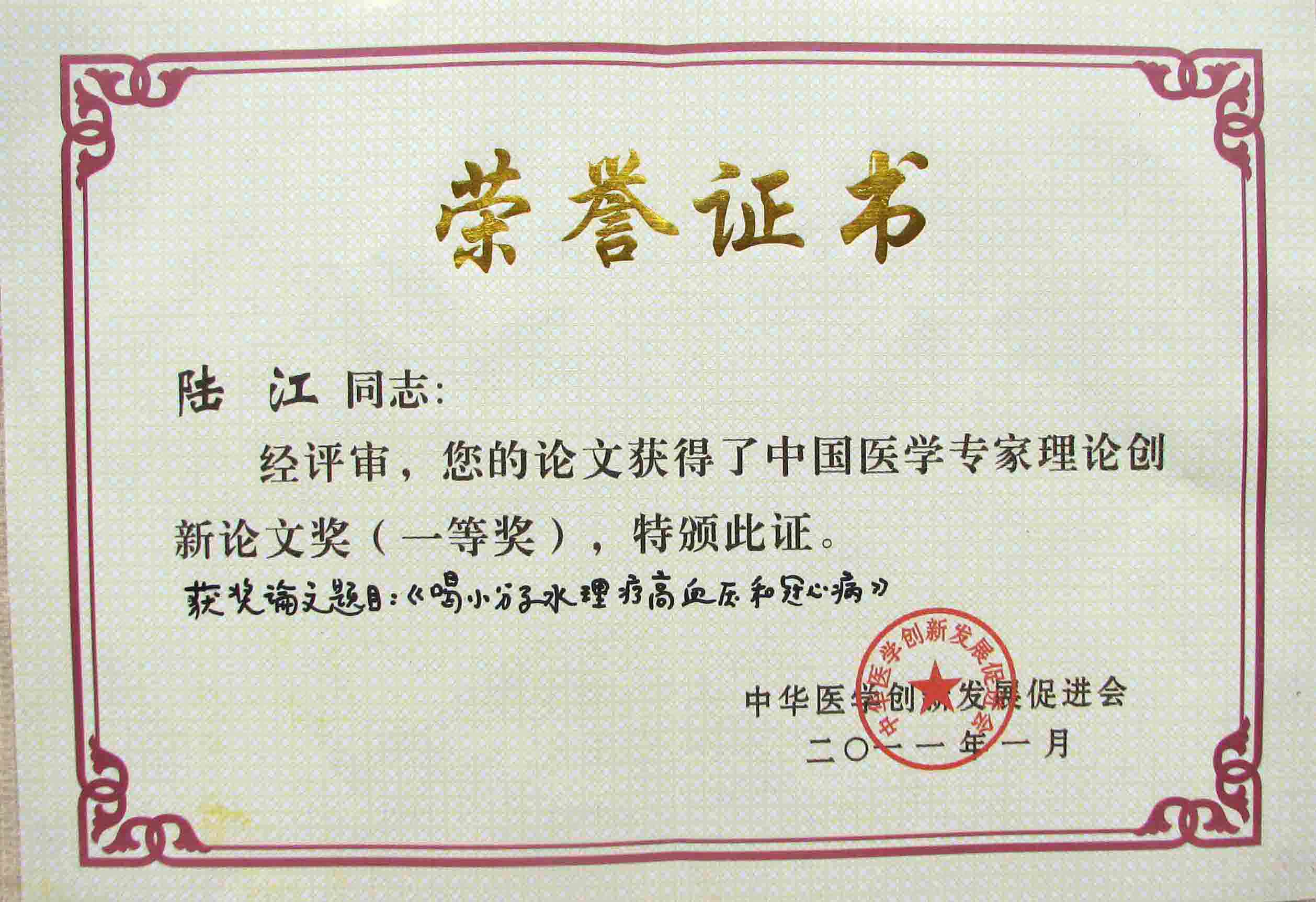 《飲用小分子水治療高血脂》獲優秀論文獎